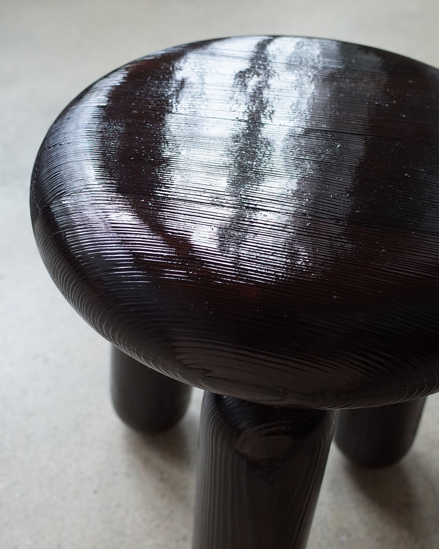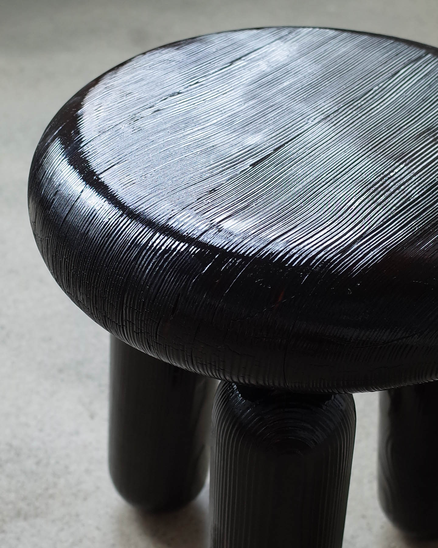 The Pine Stool is a locally sourced and crafted design object made from untreated pine wood. It is meant to age gracefully, collect the marks of time and to be passed down for generations. The stool is versatile and can serve as an additional seat for unexpected dinner guests, a side table to present your most beloved items, or simply as an object of admiration for the texture of high gloss and burnt wood grain.